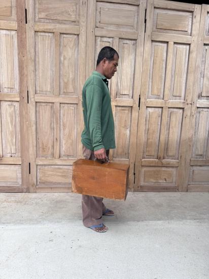 กระเป๋าไม้ถือใบเล็ก งานไม้เก่า ทำจากไม้แผ่นเดียวประกอบเข้าลิ้น แข็งแรงทนทาน หูหิ้วเหล็กเดิมทรงโบราณดีไซน์เรียบง่าย ใช้งานได้จริงหรือสะสมเป็นของ แต่งบ้านก็ดูมีเสน่ห์ ขนาดกะทัดรัด พกพาสะดวก ใบเล็กน่ารักหายาก