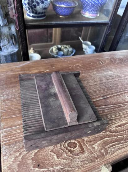 รางปั้นยาลูกกลอนเป็นรางไม้สักงานเก่าที่ใช้สำหรับปั้นยาลูกกลอน ตัวรางและตัวปั้นเป็นไม้สักทั้งชุด อายุประมาณ 50-60 ปี พื้นผิวเรียบเก่าตามอายุไม้ เหมาะสำหรับสะสมหรือวางตก แต่งในร้านยาโบราณและบ้านสไตล์วินเทจ