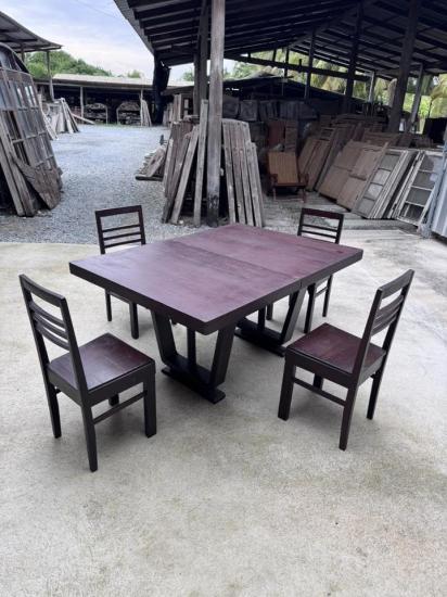 โต๊ะชักขาแชมเปญ มาพร้อมเก้าอี้ไม้สักสี่ตัว