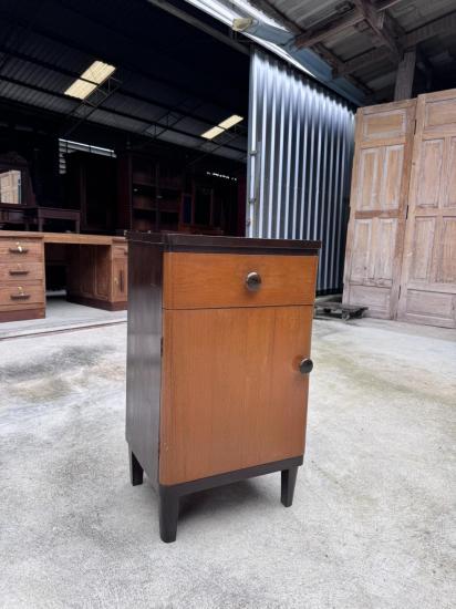 ด้านบนมีลิ้นชักหนึ่งช่องสำหรับเก็บของใช้เล็กน้อย ส่วนล่างเป็นบานเปิด ภายในมีชั้นวางของสองระดับ โครงสร้างแข็งแรง ขาเหลาได้ทรงสวย เหมาะสำหรับวางข้างโต๊ะทำงานหรือใช้เป็นตู้ข้างเตียง เพิ่มความคลาสสิกให้มุมห้องได้อย่างลงตัว