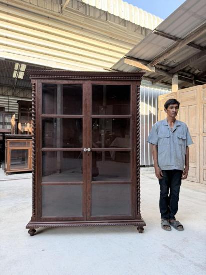 ตู้ไทยหัวบัวงานสั่งทำพิเศษ ออกแบบเลียนแบบงานยุค ร.5 ไม้สักทั้งใบทำมือละเอียด ข้างเกลียวลอย ใต้บัวเดินไข่ปลาทั้งบัวบนและบัวล่าง ขาส่งลูกจัน ข้างโปร่ง ตัวตู้จิกลายรอบใบ ด้านในมีชั้นวางสี่ชั้น ชั้นวางเดินเซาะร่องเป็นระเบียบ งานดี ประณีตทั้งโครงและรายละเอียด พร้อมใช้งานทันที เหมาะสำหรับตั้งโชว์ข้าวของ งานสะสม หรือใช้ตก แต่งบ้านสไตล์ไทยโบราณ