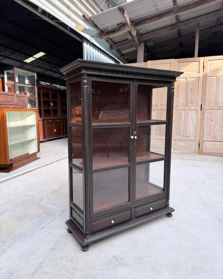 ตู้หัวบัวข้างเกลียวเชือกด้านข้างโปร่งใบใหญ่ตู้ไม้สักงานเก่าอายุเกิน 70 ปี รุ่นข้างโปร่งให้แสงผ่านสวยงาม เหมาะสำหรับโชว์ของสะสมหรือวางของใช้ในบ้าน ช่องโปร่งช่วยให้มองเห็นลายไม้สักชัดเจน ตัวงานเดิมทั้งใบมีบัวและรายละเอียดแบบดั้งเดิมครบถ้วน ใช้งานได้ทั้งบ้านและร้านที่ต้องการความคลาสสิก