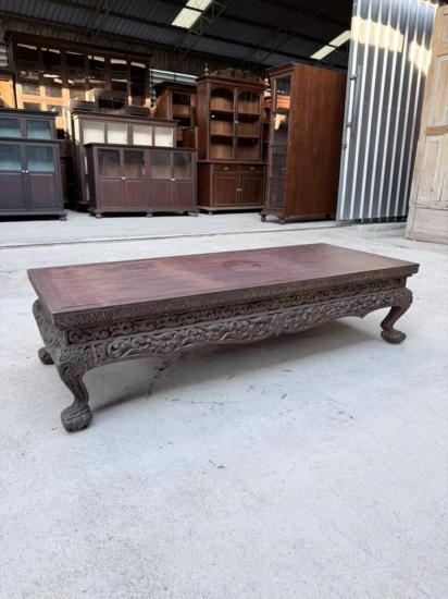 ตั่งขาสิงห์งานเก่าสีเดิมทั้งตัว ท็อปเป็นไม้สองแผ่นต่อเรียบแน่น ลายแกะรอบสี่ด้าน แกะมือแบบงานเก่าที่ให้รายละเอียดลึกและต่อเนื่อง ขาสิงห์ยกสวยตามแบบนิยม งานไม้สักทั้งใบ แข็งแรง ใช้งานได้ทั้งวางของ ตั้งโชว์ หรือจัดเข้ามุมบ้านสไตล์คลาสสิก–วินเทจ เหมาะสำหรับผู้ที่ชอบงานเก่าอายุเกิน 50 ปีและต้องการชิ้นงานที่มีเอกลักษณ์ชัดเจน