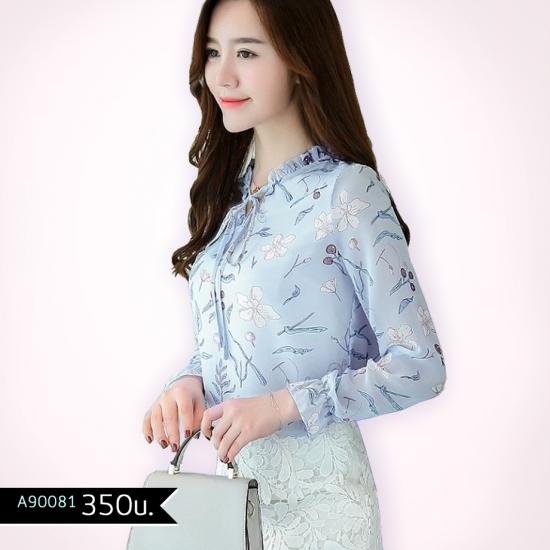 Home / All Product List / ชีฟองแขนยาว ลายดอกไม้ คอแต่งละบาย มีสายผูก |
