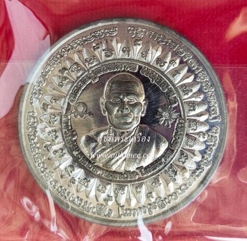เหรียญบาตรน้ำมนต์ มหาไสยเวทย์ทานตะวัน เนื้อตะกั่วผสมเงินยวง หลังเรียบ จารมือ