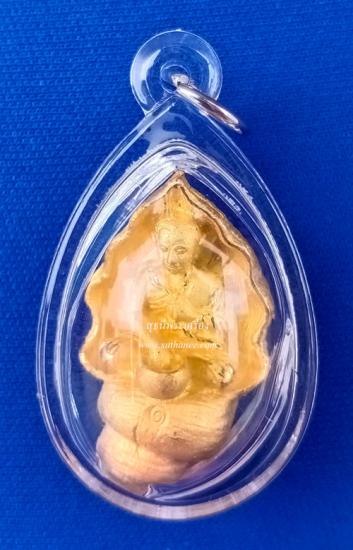 พระอุปคุตทวีทรัพย์ 2.8 ซ.ม. เนื้อสัมฤทธิ์ชุบทอง พร้อมเลี่ยมกรอบอะครีลิค