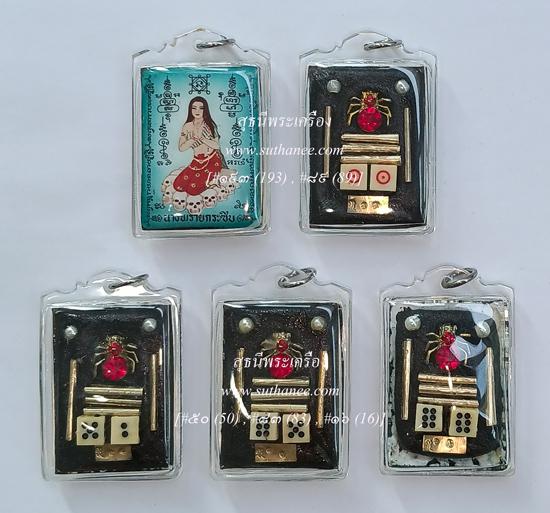 "แมงมุมดักทรัพย์ , ตะกรุด 5 ดอก , เต๋า 2 ลูก , มุกขาว 2 เม็ด"