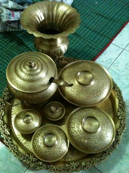 ชุดทองเหลือง ชุดถวายอาหารดระสงฆ์ ตอกลายไทย