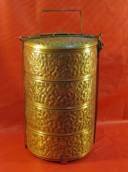 ปิ่นโตทองเหลืองตอกลายดอกไม้ 4 ชั้น >> ราคาพิเศษ <<