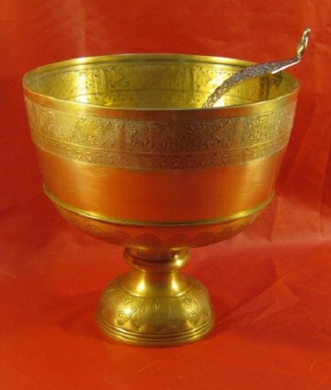 ขันทองเหลือง ขันพานตักบาตรลายบัว 9 นิ้ว พร้อมทัพพี