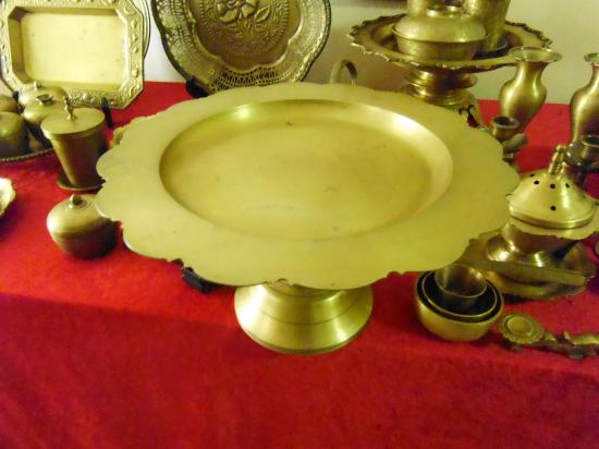 โตกหล่อทองเหลืองโบราณ พานทองเหลือง 12 นิ้ว