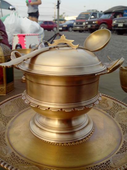 หม้อตักซุป หม้อทองเหลืองพร้อมทัพพีซุป ึ 7 นิ้ว
