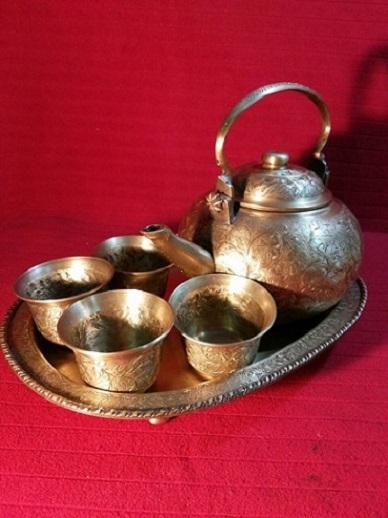 ชุดน้ำชากาหล่อใหญ่ตอกลาย ถาดเปล 12 นิ้ว