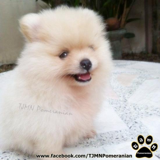 น้องทีน่า ปอมไซส์เล็ก สีขาวครีม เพศเมีย พร้อมใบเพ็ด