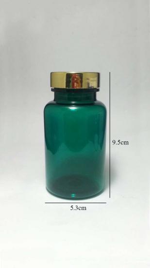 ขวดพลาสติกชนิดPET สีเขียว ฝาพลาสติกทองเงาใส่แคปซูลเบอร์ 0 ได้ 80-105 เม็ด 1แพ็คมี 105 ใบ ราคารวมบริการจัดส่ง1600