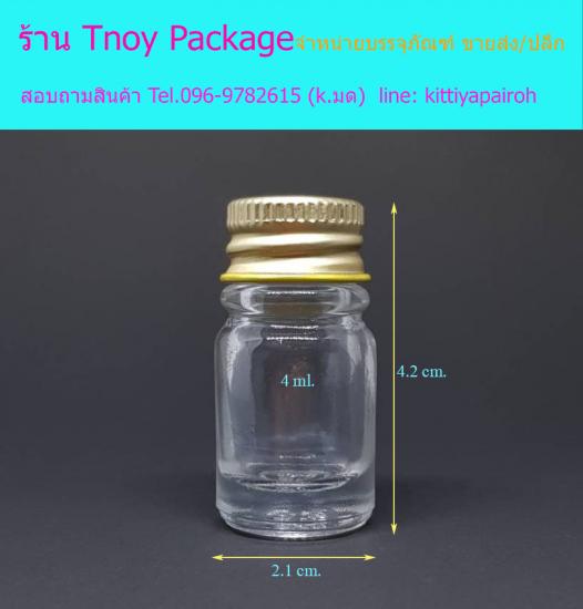 Home / All Product List / 4ml (ขวด 4 มล.(100ใบ) แก้วใส จุกรู+ฝาโลหะ) |