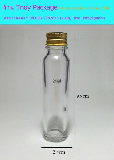 24ml (ขวด 24 มล.(100ใบ) แก้วใส จุกรู+ฝาโลหะ)