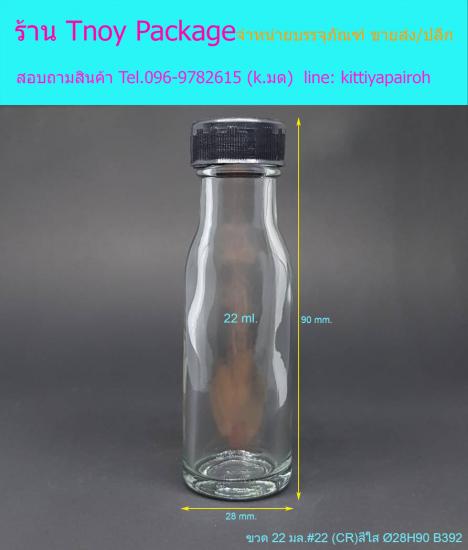 22ml (ขวด 22 มล.(100ใบ) แก้วใส จุก+ฝาพลาสติกดำ)