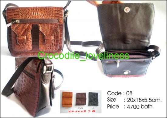 เป็นกระเป๋าสะพายหนังจระเข้แท้ Grade A ขนาด:20x18x5.5ซ.ม ผลิตโดยช่างผู้ชำนาญการ และมีประสบการณ์ เป็นสินค้าส่งออก ราคาที่นำมาขายนี้ เป็นราคาสำหรับลูกค้าคนไทยเท่านั้น มี3สีให้เลือก