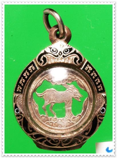 @ เหรียญปีมะเมีย เนื้อเงินฉลุ สมัยรัชกาลที่ ๕ ตลับเงินลงยา