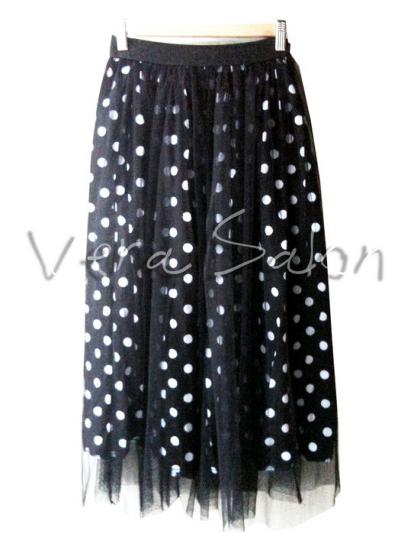 กระโปรงสุ่มผ้ามุ้งซับผ้าลายจุด