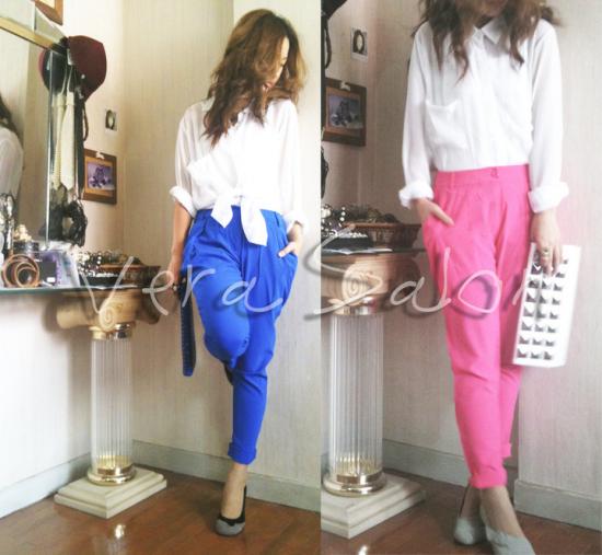 กางเกงเอวสูงสีน้ำเงิน และ สีชมพู