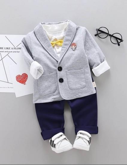 เซตออกงานหนุ่มน้อย สีสุภาพน่ารัก เซต5ชิ้น เสื้อเชิ้ต เสื้อสูท หูกระต่าย เข็มกลัด กางเกง ชุดเซตสีเทาสุภาพเรียบร้อย เนื้อผ้านุ่มสบาย ใส่ออกงานหรือโอกาสไหนก็น่ารัก ขนาด s m l xl S (80) - รอบอกเสื้อสูท 58 cm รอบอกเสื้อตัวใน 50 cm รอบเอว 36-44 cm ความยาวกางเกง 46 cm M (90) - รอบอกเสื้อสูท 60 cm รอบอกเสื้อตัวใน 52 cm รอบเอว 38-46 cm ความยาวกางเกง 49 cm L (100) - รอบอกเสื้อสูท 62 cm รอบอกเสื้อตัวใน 54 cm รอบเอว 40-48 cm ความยาวกางเกง 52 cm XL (110) - รอบอกเสื้อสูท 64 cm รอบอกเสื้อตัวใน 58 cm รอบเอว 42-50cm ความยาวกางเกง 55 cm ราคา 499 บาท