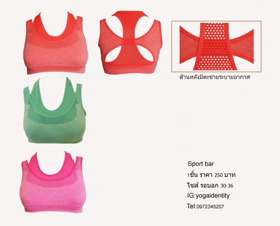 สปอร์ตบรา 2 ชั้น มีรูระบายอากาศ ซับเหงื่อได้ดี มีฟองน้ำสามารถถอดและใส่ได้ตามความต้องการ สี:ส้ม/เขียว/ชมพู ไซส์: รอบอก 30-36